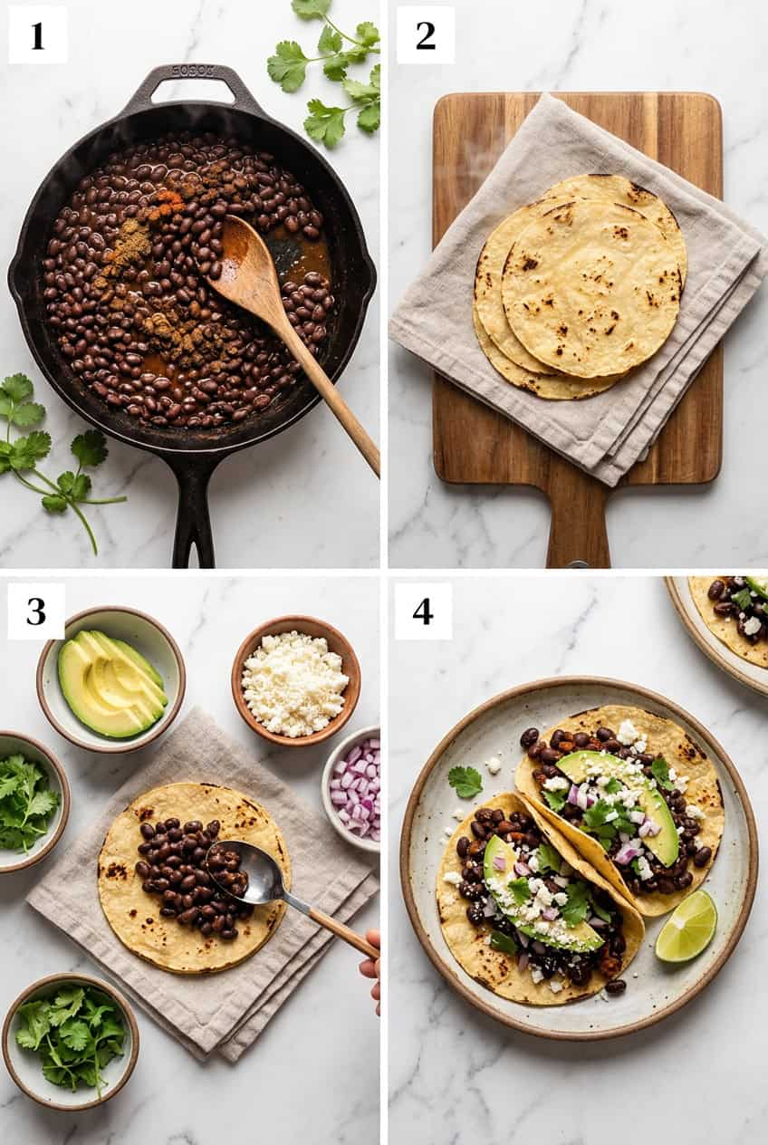 Double-stack your corn tortillas and warm them before filling. Mashing half the beans also helps because it creates a sticky base that holds everything together.