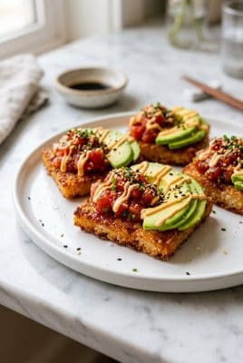 Golden, crunchy rice cakes topped with silky spicy tuna and a drizzle of sriracha mayo. [...]