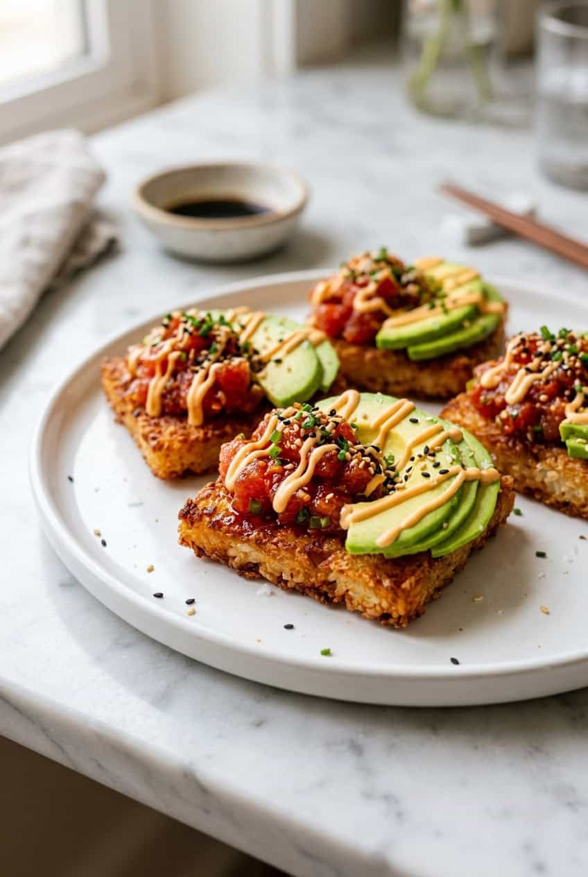 This dish works because the contrast between the hot, crunchy rice and the cool, creamy spicy tuna is addictive. The rice gets a golden crust from pan-frying while staying soft inside, and the tuna mixture brings heat, acid, and umami all at once. It’s the viral appetizer that actually lives up to the hype.